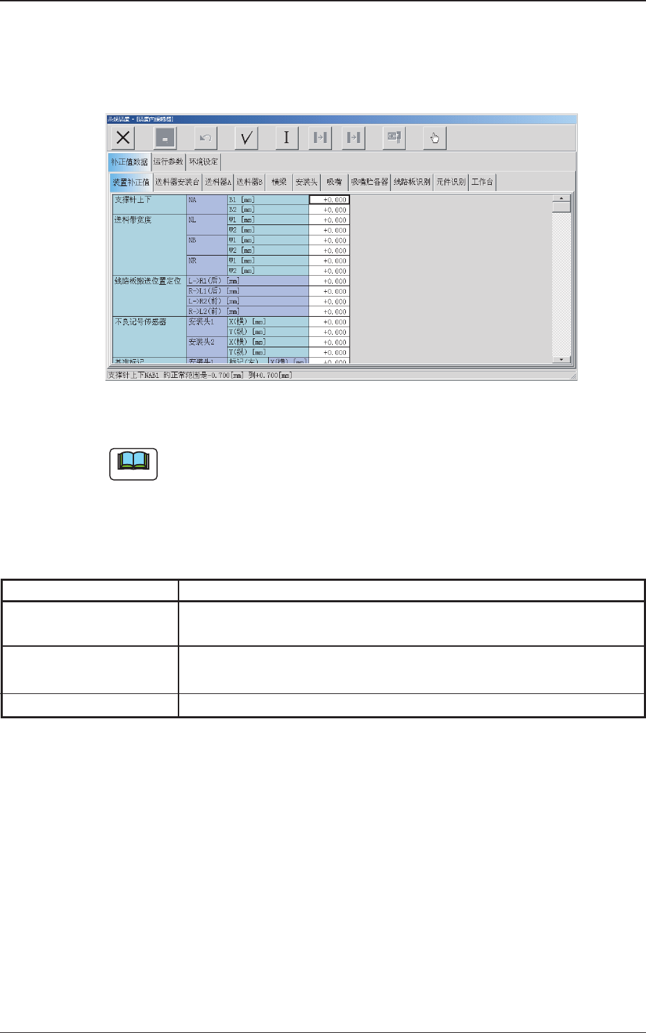 补正值数据 设定有关装置运行的各单元部的位置调整和精度的补正值数