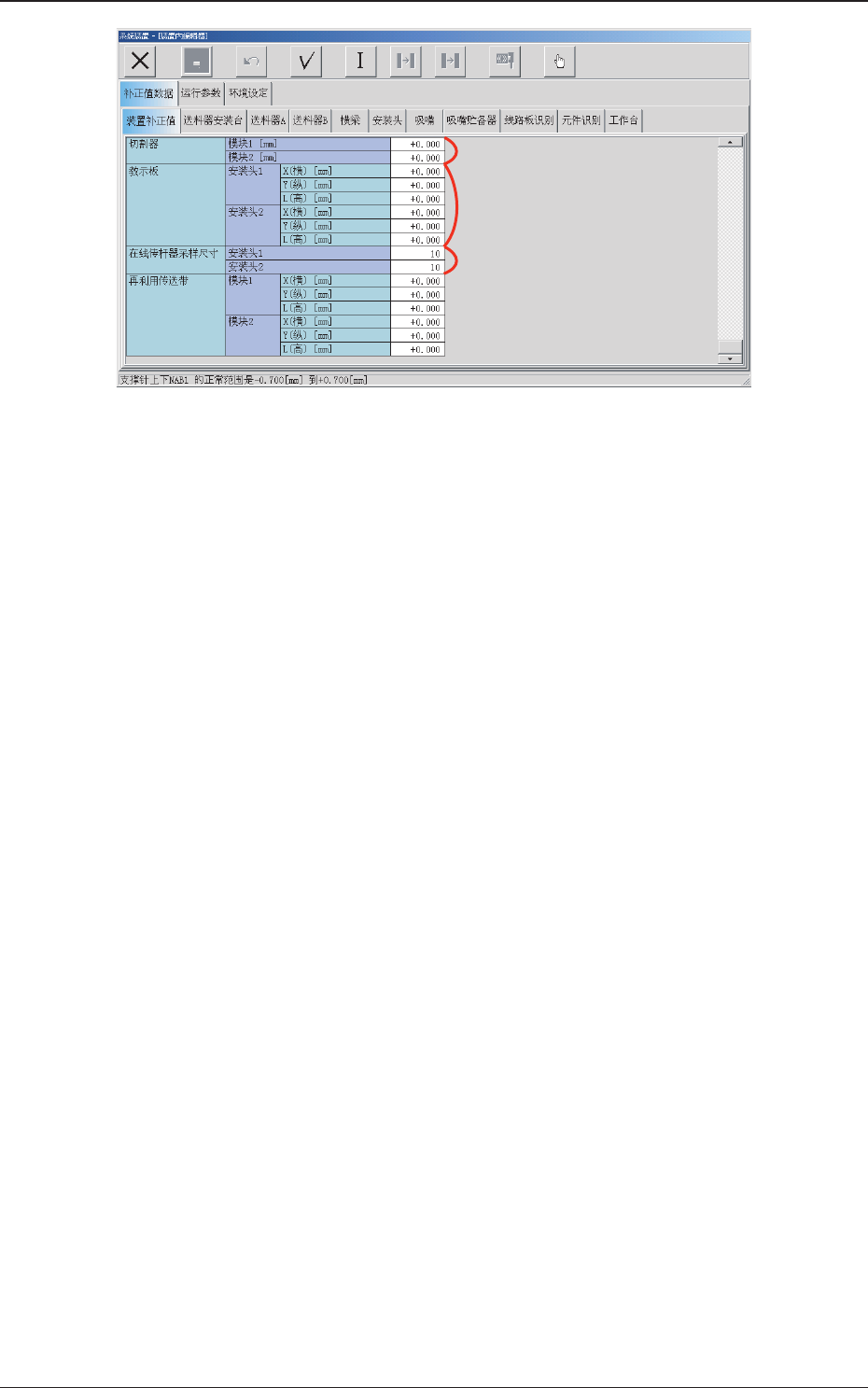 传送带宽度的绝对值对准用补正值数据。输入在定位中心