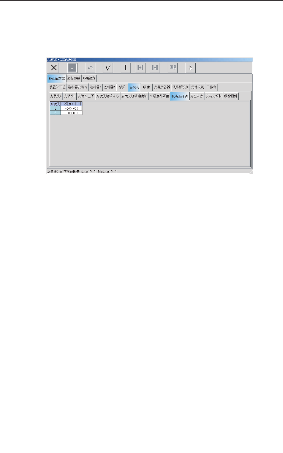 调整安装头旋转轴和吸嘴选择轴的角度偏离。
