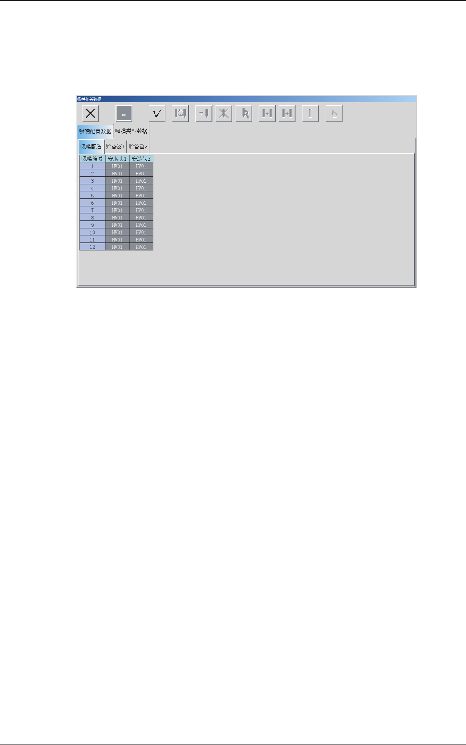 吸嘴配置数据 选项卡中,按[ 吸嘴配置]Tab,显示以下选项