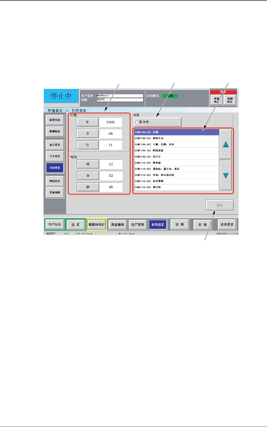 可以设定装置的系统时间( 年、月、日、时、分、秒) 及时区。