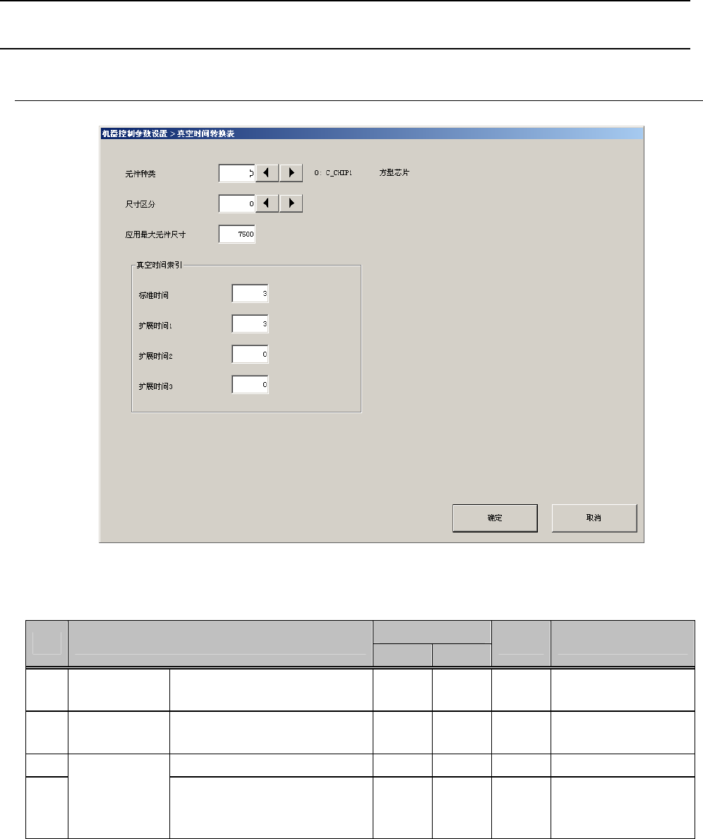 机器控制参数 真空时间转换表 设定项目 输入范围 项目 最小值 最大值 单位 备考 元件种类 参照 元件 种类 尺寸区分 �…