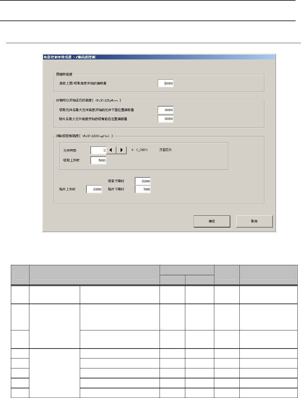 机器控制参数 轴高度控制 设定项目 输入范围 项目 最小值 最大 值 单位 备考 预旋转高度 基板上面 吸取高度开始的 偏移量 μ 初期值 …