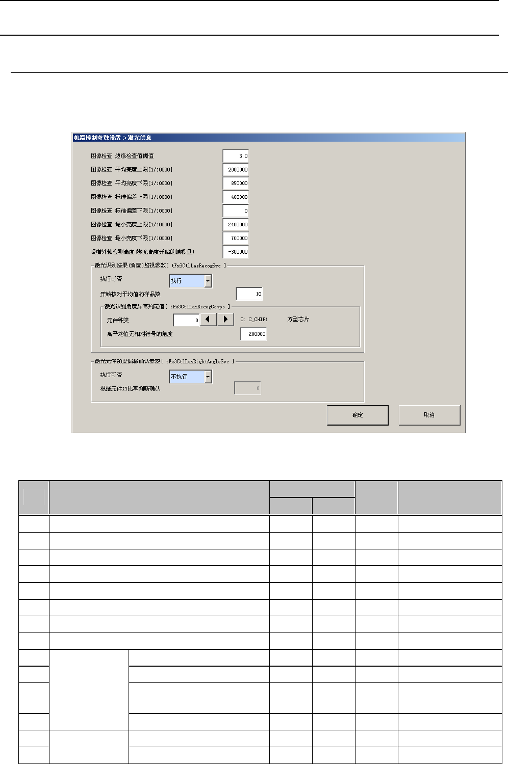激光元件度角度偏移确认参数的设定通过在执行可否中选择执行使编译成为可能。