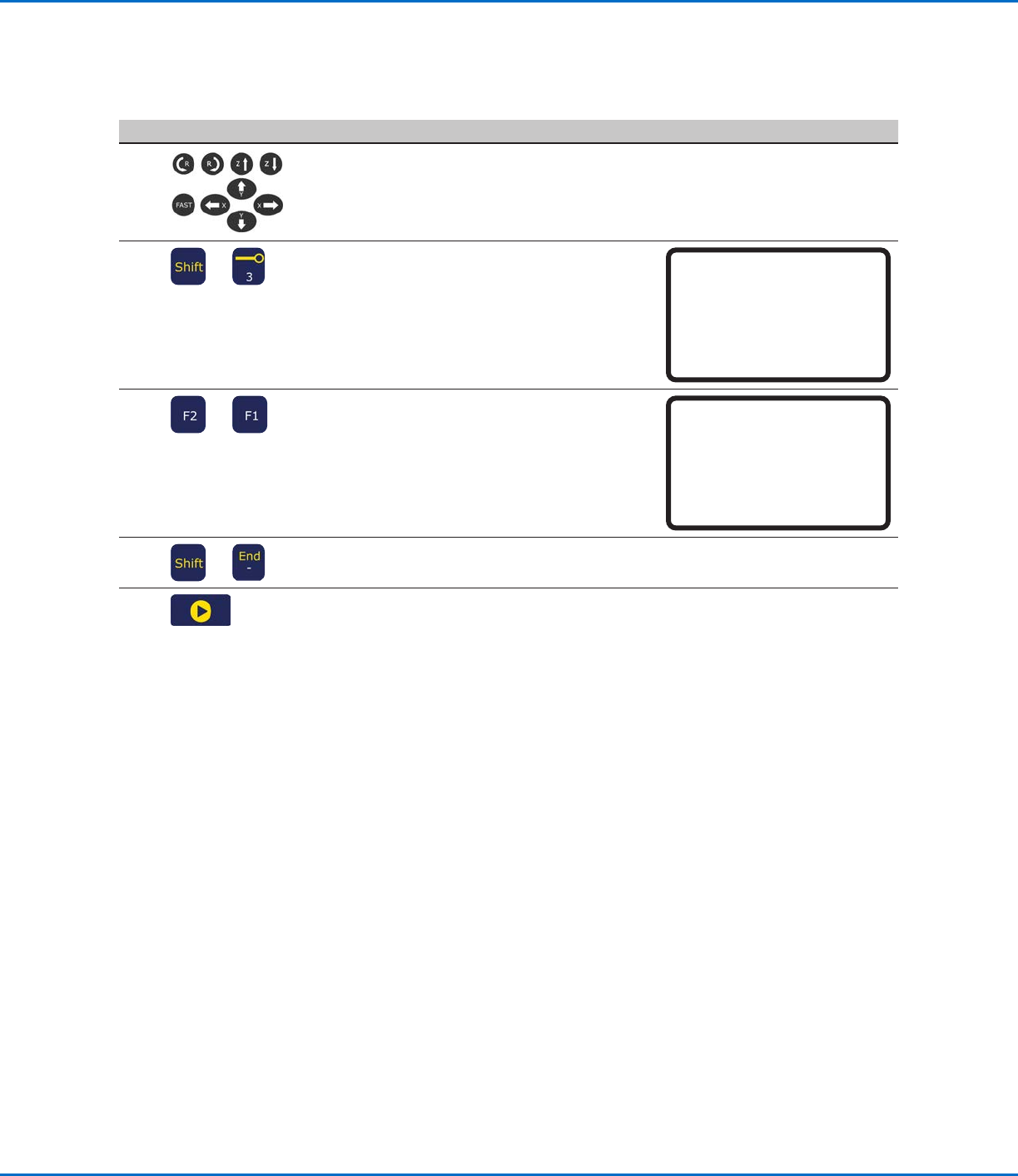 R系列自动点胶系统 61 www.nordsonefd.com/cn china@nordsonefd.com +86 (21) 3866 9006 诺信 EFD 在全球范围内销售专业点胶系统并提供技术支持服务 创建图样(续) 创建图样(续) 如何划线 如何划线 线经过点 线起始点 线结束点 先决条件 先决条件 系统处于教导模式下。参考第44页上的“如何从运行模式切换至教导模式”。 # # 按键 按键 步骤 步骤 教导盒显示界面 教…
