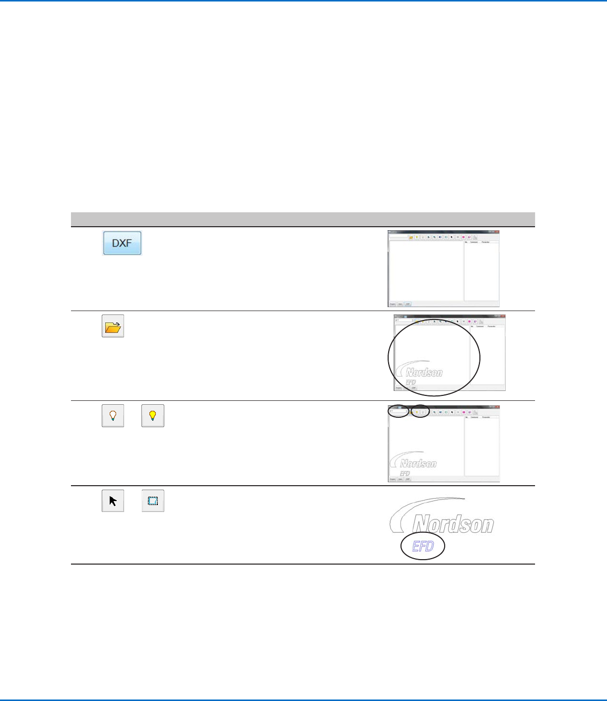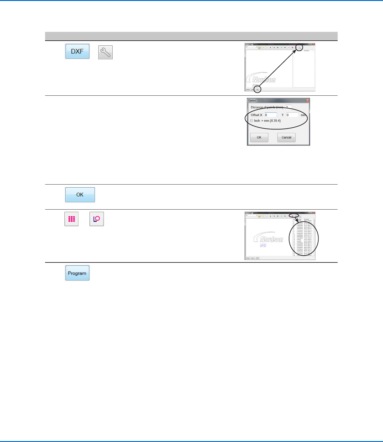 R系列自动点胶系统 125 www.nordsonefd.com/cn china@nordsonefd.com +86 (21) 3866 9006 诺信 EFD 在全球范围内销售专业点胶系统并提供技术支持服务 更改DXF输入选项 更改DXF输入选项 如果源DXF文件没有完全导入,请按照此步骤来更新DXF导入选项,以改进导入结果。 # # Click Click 步骤 步骤 Reference Image Reference Imag…