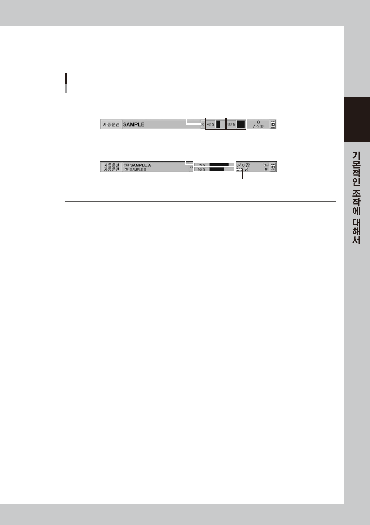 소프트웨어 버전 4.65 R1.000 이후의 경우 스테이터스 에리어에 “탑재 완료율”이 표시됩니다 .