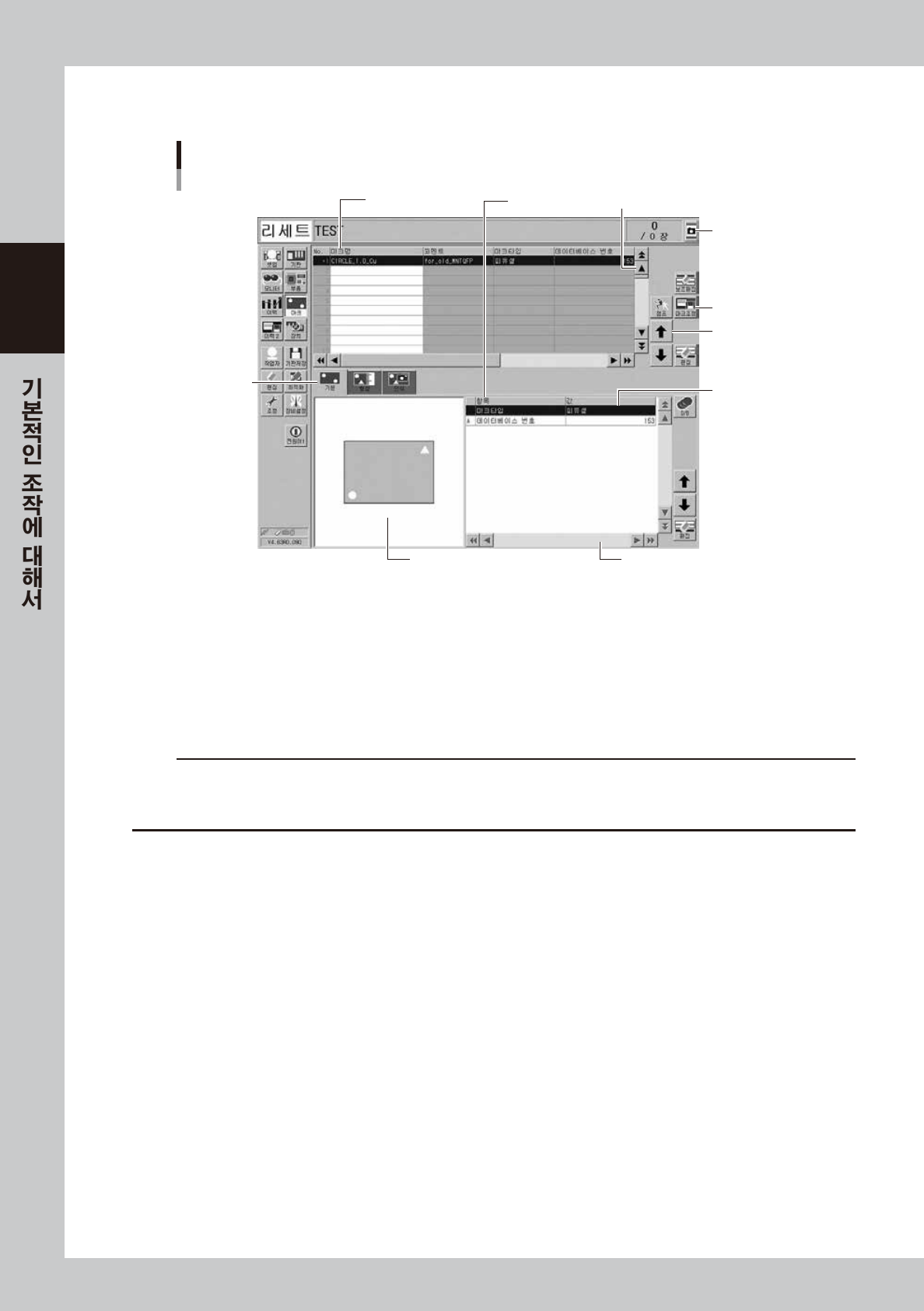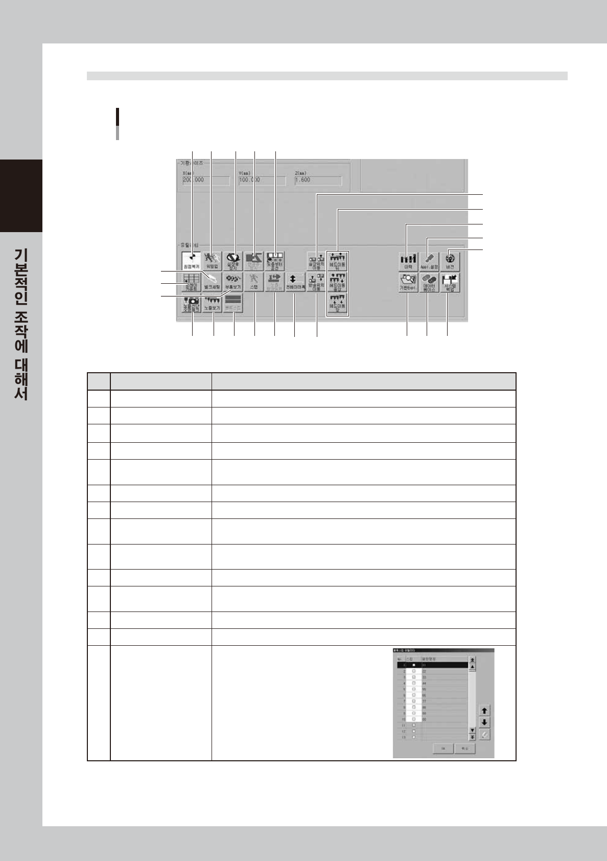 조작 화면상에는 각종버튼 , 선택탭 , 입력박스가 사용되고 있습니다 .