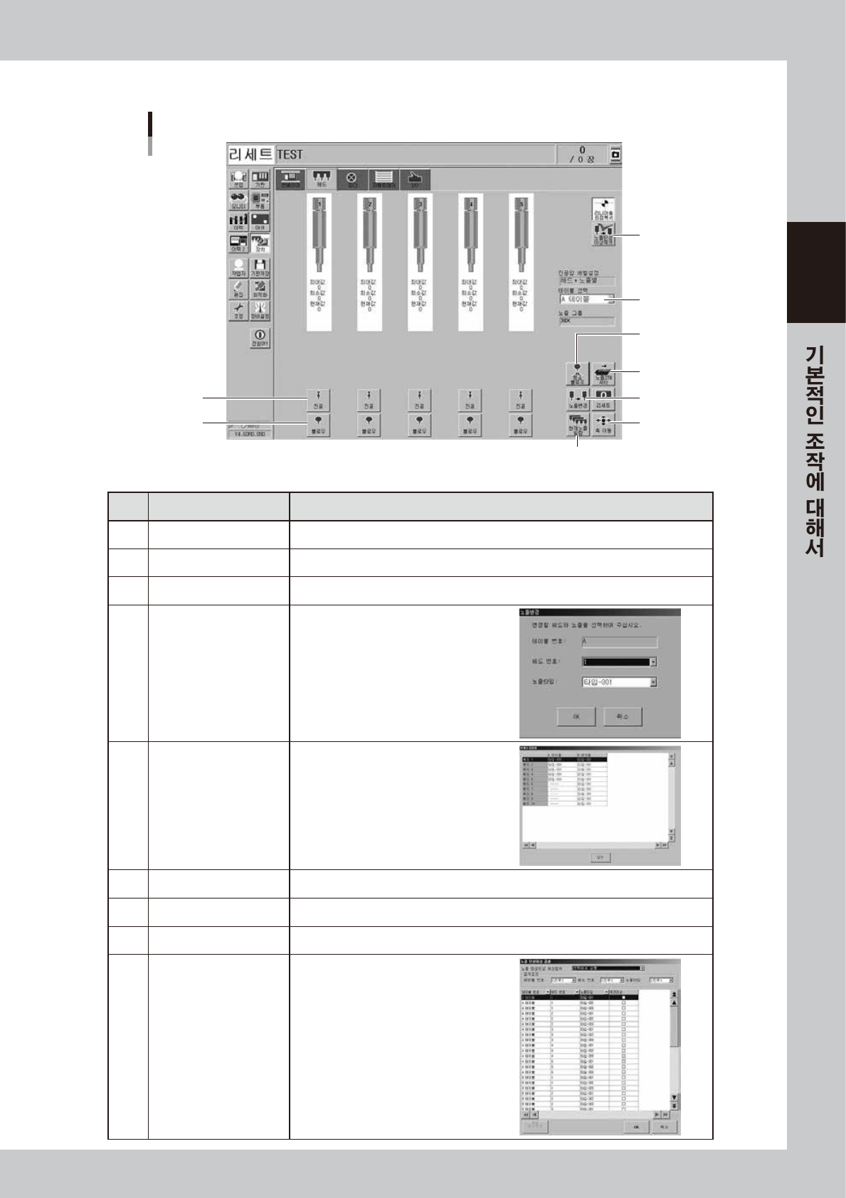 2-20 2 ■ 피더 수 동 조 작 「장치」 ー 「피더」화면 1 4 7 8 2 5 3 9 6 싱글레인 화면의 예 2 8 211- K M K- 0 0 버튼명 기능 1 보내기 한번누르 면테이프를앞쪽으 로피치설정분만 큼보 냅니다 . 2 되 돌 리기 한번누르 면테이프를뒤쪽으 로피치설정분만 큼보 냅니다 . 3 피더 설정 전송피치는1 ~ 72m m 까지사양 에맞춰선택…