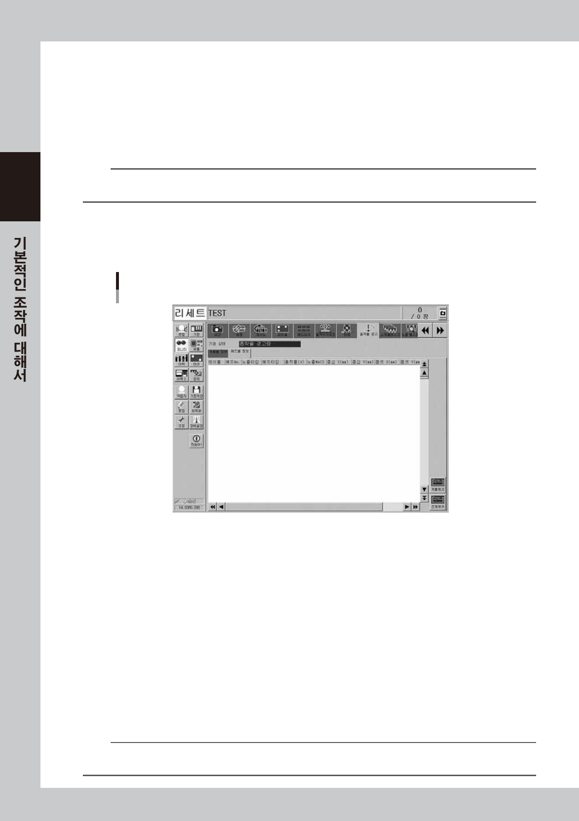 이 화면은 ,「진공압 체크」,「노즐선단 오염체크」 등의 스케줄 태스크를 실행한 결과를 표시합니다.