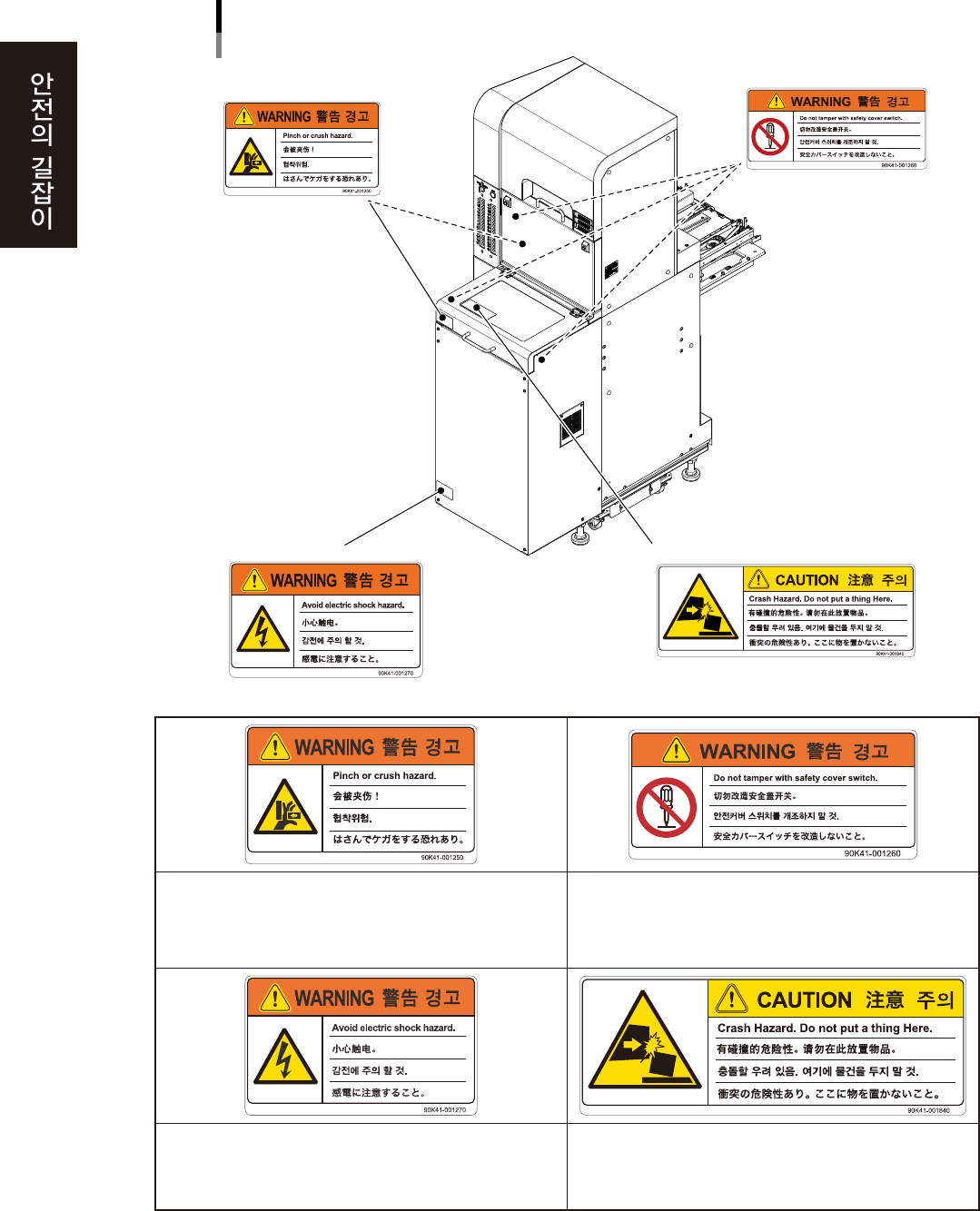 운전중이나장비를취급할때에는 ,절대로손을장비내에넣지말것 . 커버스위치를만지거나개조하지않는다 .커버스위치가해제되어