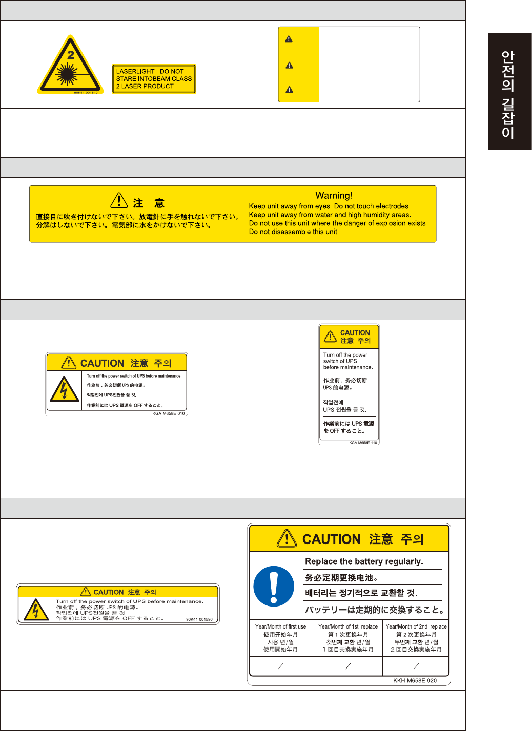작업할경우는 ,UPS 장치의스위치를OFF 하고실시할것 . 배터리에는수명이있으므로 ,정기적으로교환할것 .
