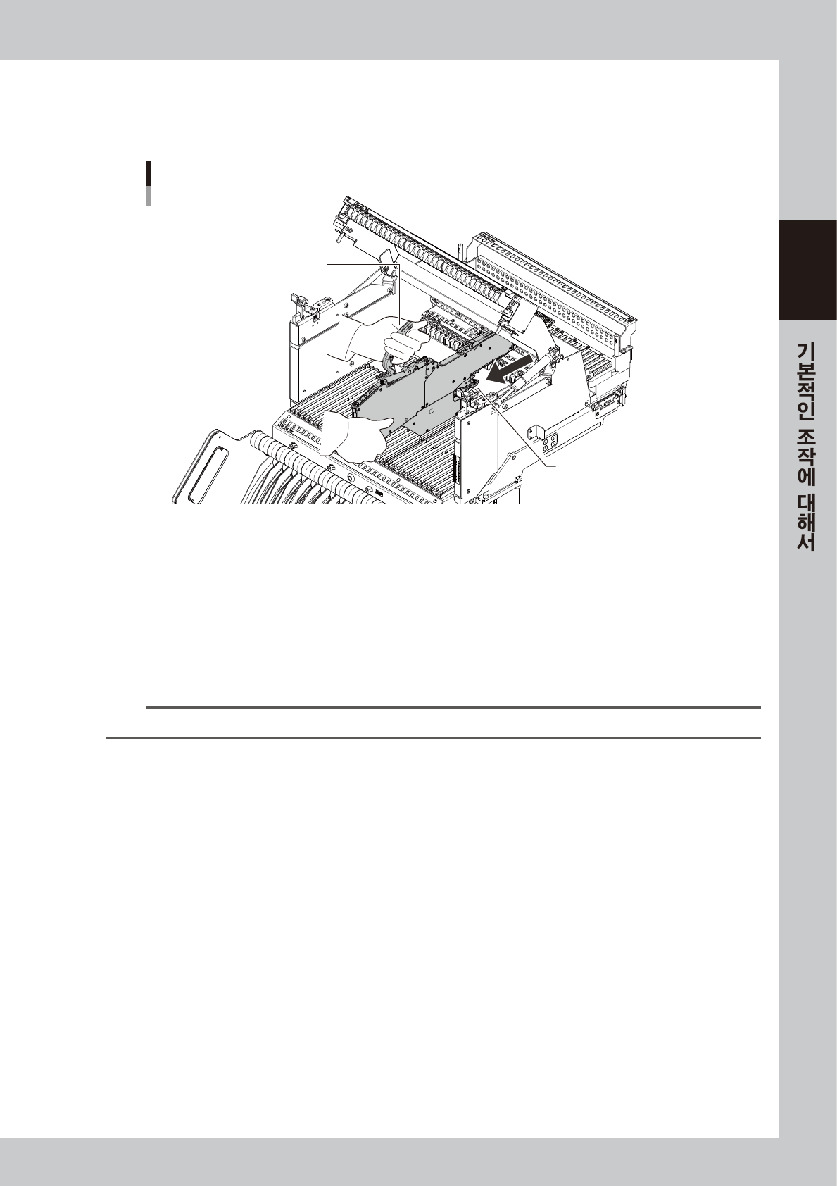 1. SS 피더 하부를 손으로 지탱하면서 , 핸들을 잡고 자기 앞쪽으로 당깁니다 .