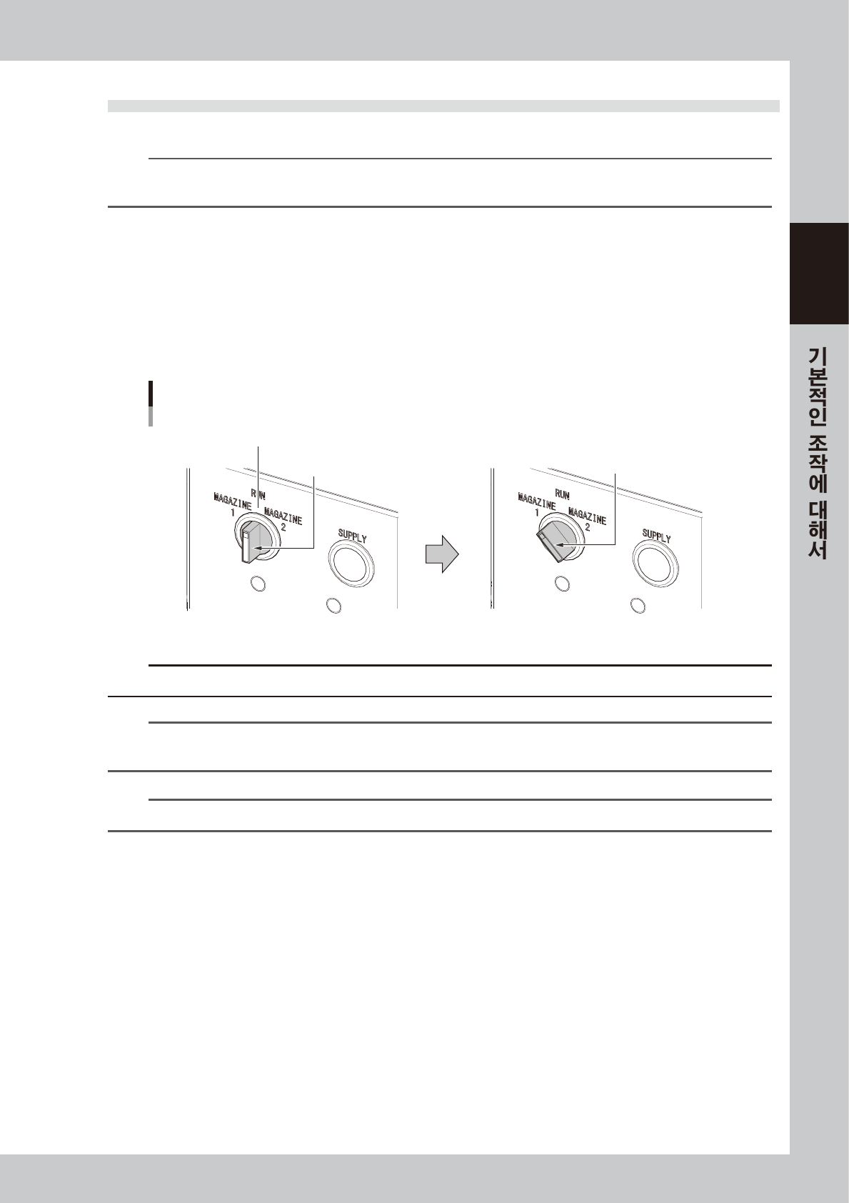 매거진 교환 SW 가「RUN」으로 되어 있을 때에는 , 매거진 도어를 오픈할 수가 없습니다.