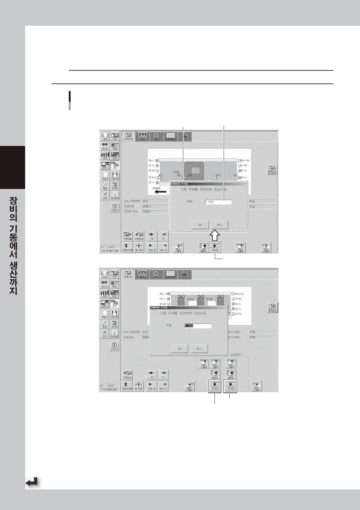 1. [ 장치 ]-「컨베이어」화면의 [ 컨베이어폭 ] 버튼을 누릅니다 .