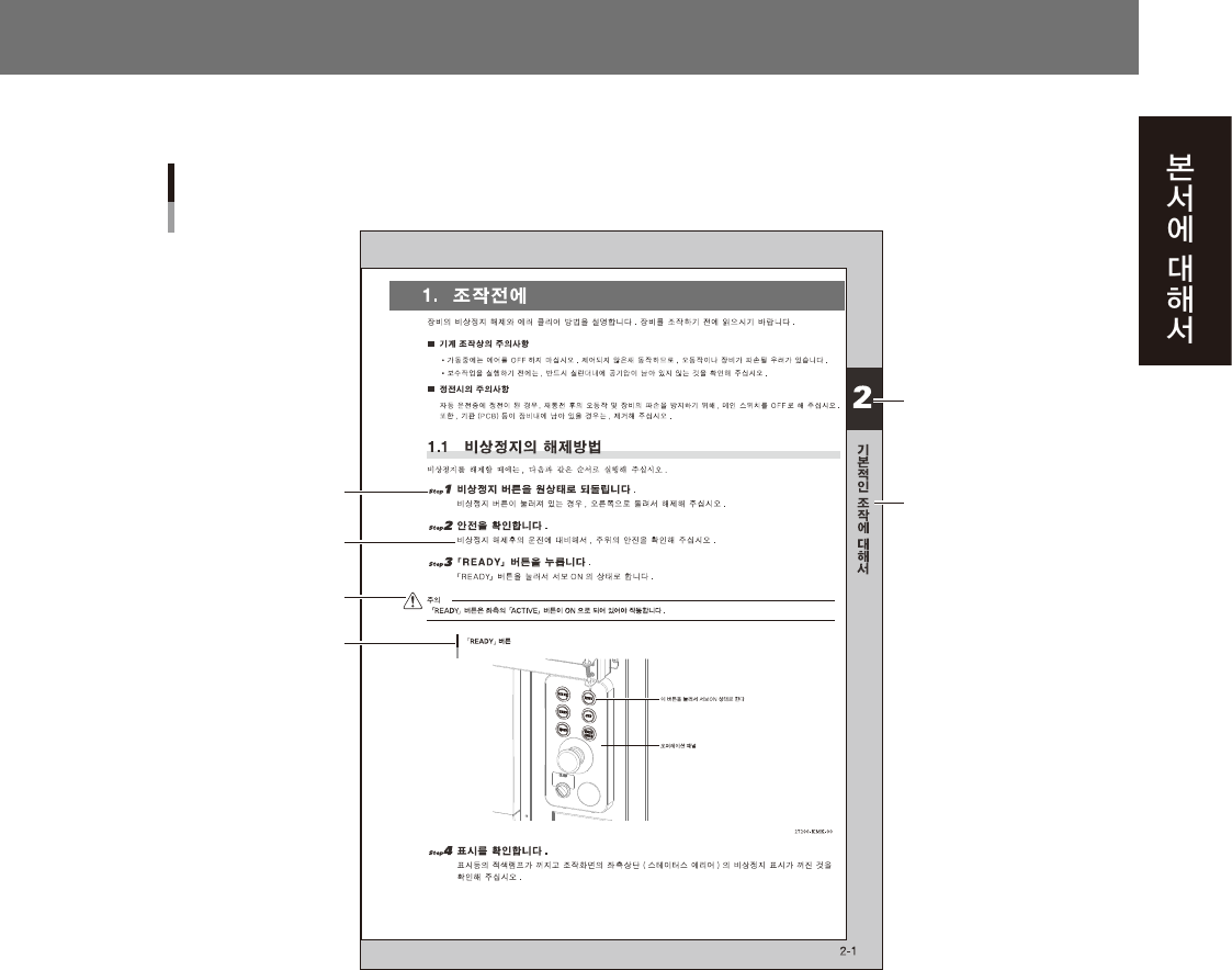 장비 전체의 설명 및 운전 조작에 필요한 내용이 설명되어