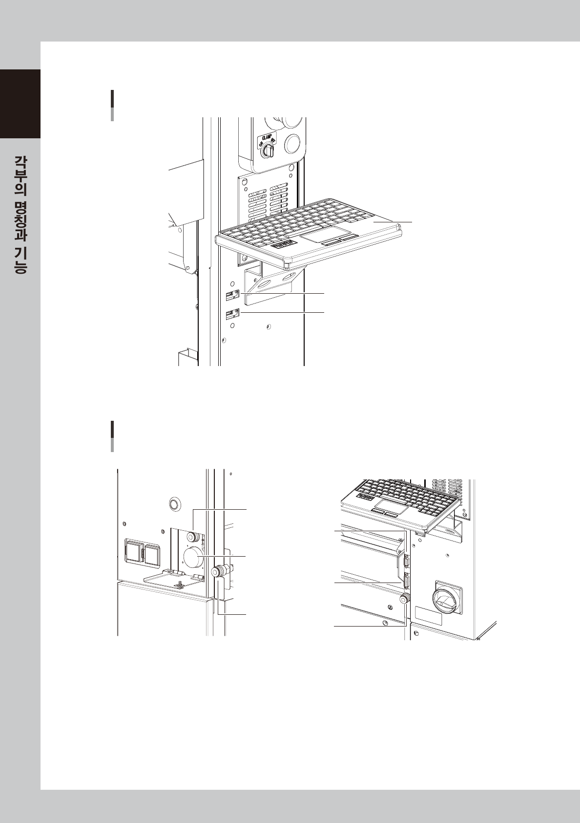 본 장비의 정면과 배면 ( 옵션 ) 에는 데이터 입력에 사용하는 오퍼레이션 패널버튼 , 오퍼레이션 디스플레이가