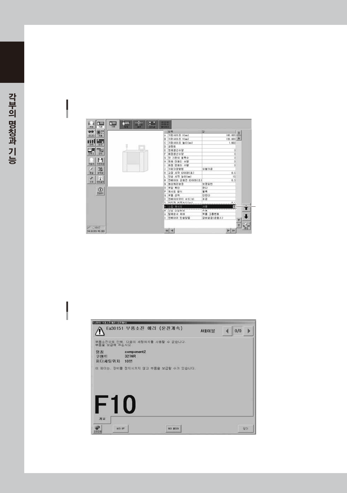 부품소진이되면 ,다음과같은에러메시지가표시되며 ,운전은계속됩니다 .