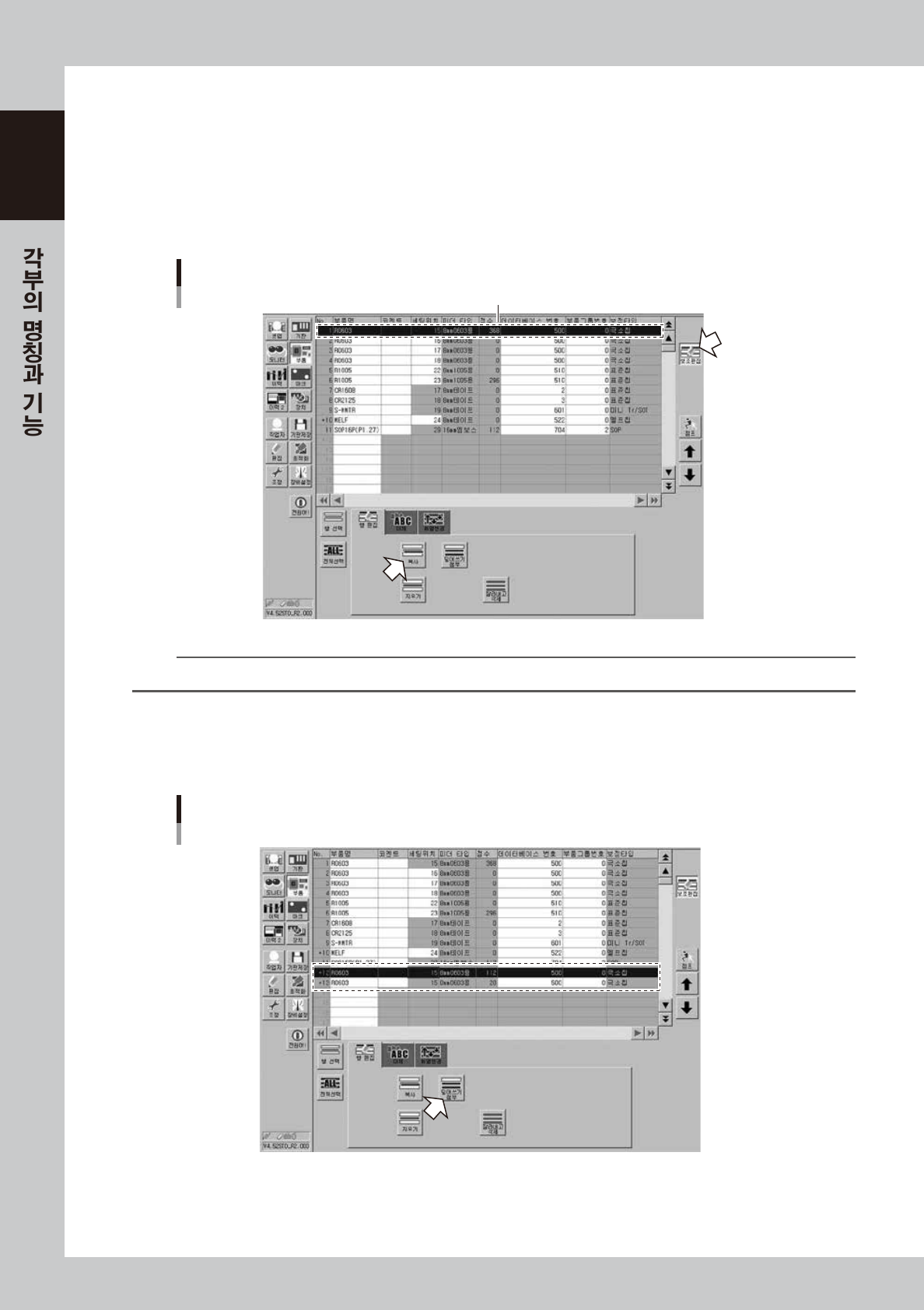 화면 상부의 부품일람 리스트에서 , 대체할 부품을 선택해 주십시오 .