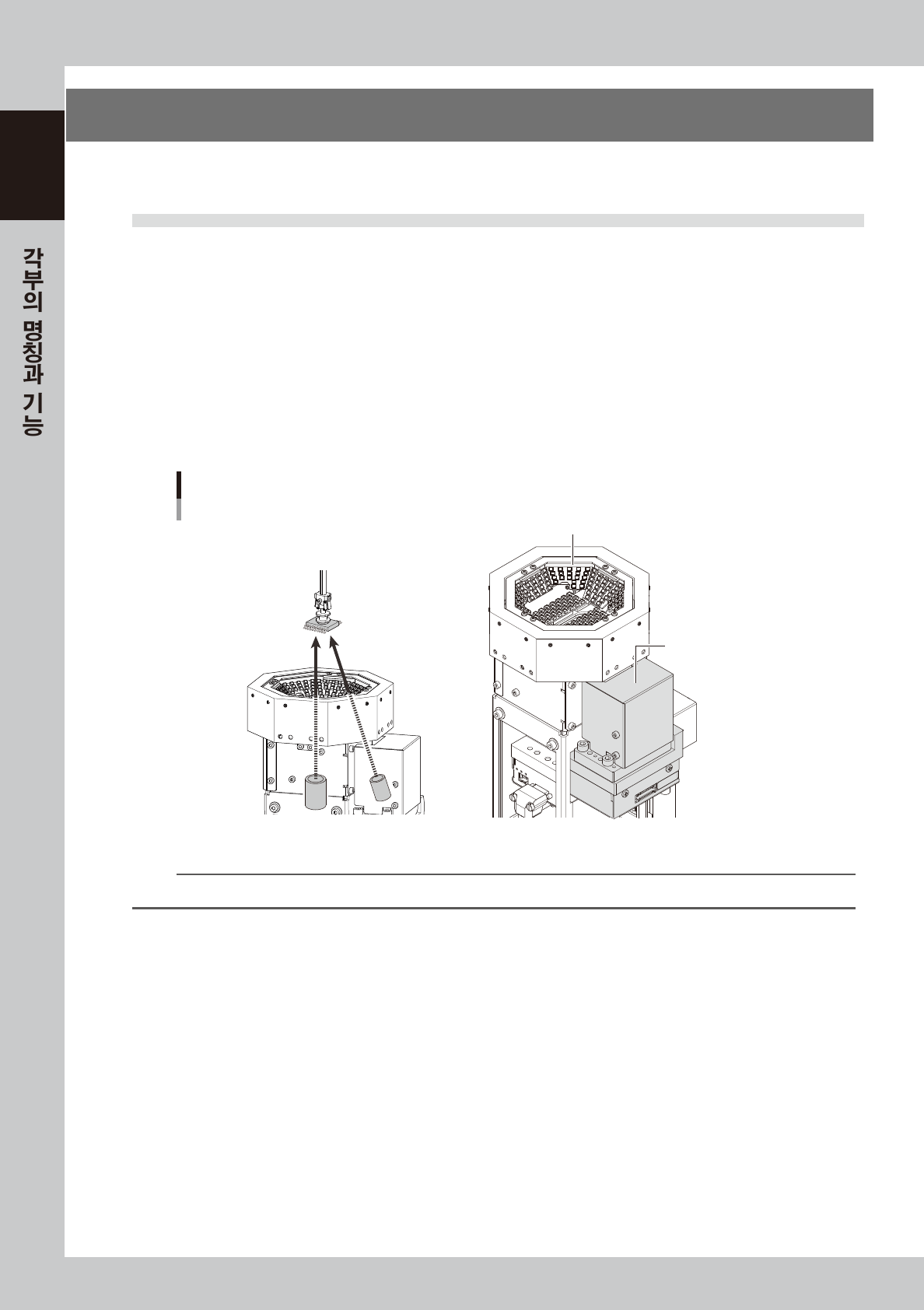 본 장비의 이오나이저는 안전커버의 안쪽면에 설치되어 있으며 , 공장 출하시의 이오나이저의 방향은 피더의 부품