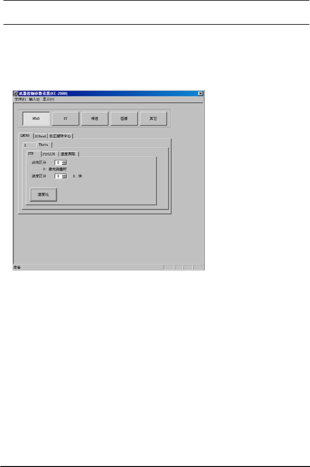 R e v 1 . 00c 机械控制参数 3-4 3-1-4 θ 轴 PTP 以外的动作的起动画面 选择了 [LNC60][T][PTP 以外 ] 或 [IC Head][T][PTP 以外 ] 之后, 就会显示出如图 3-1-4 所示的表格。 画面为 [LNC60] 时的情形, [IC Head] 也一样。 图 3-1-4 θ 轴 PTP 以外的动作的起动画面 把 动作类别 设定到想编辑的目录中,选择了 [ 速度比 ] 按键或…