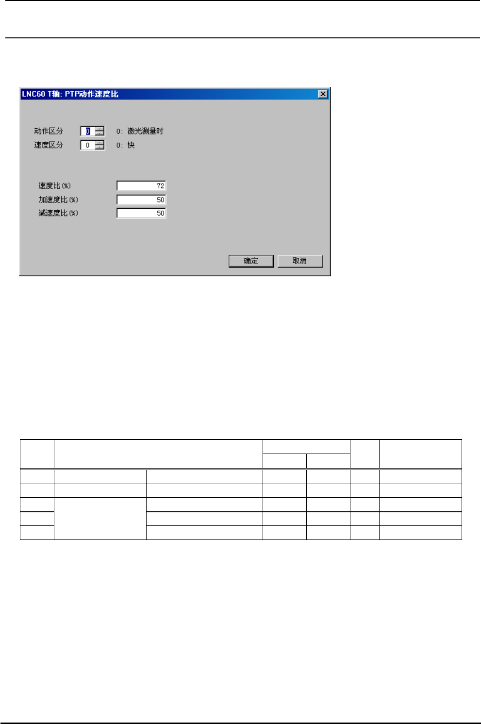 菜单∶ LNC60时, [输入]→[Head]→[LNC60]→[T]→[PTP]→[速度比]