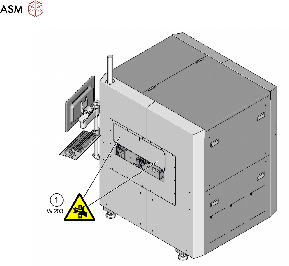 2 Safety 2.2 Warning labels Instruction Guide ASM ProcessLens Dual-lane 06/2018 19 2.2.1 Warning labels on the machine Fig.4: Warning labels front view 1 W 201 [03009338-xx] 2 W 202 [03009341-xx] 3 External grounding po…