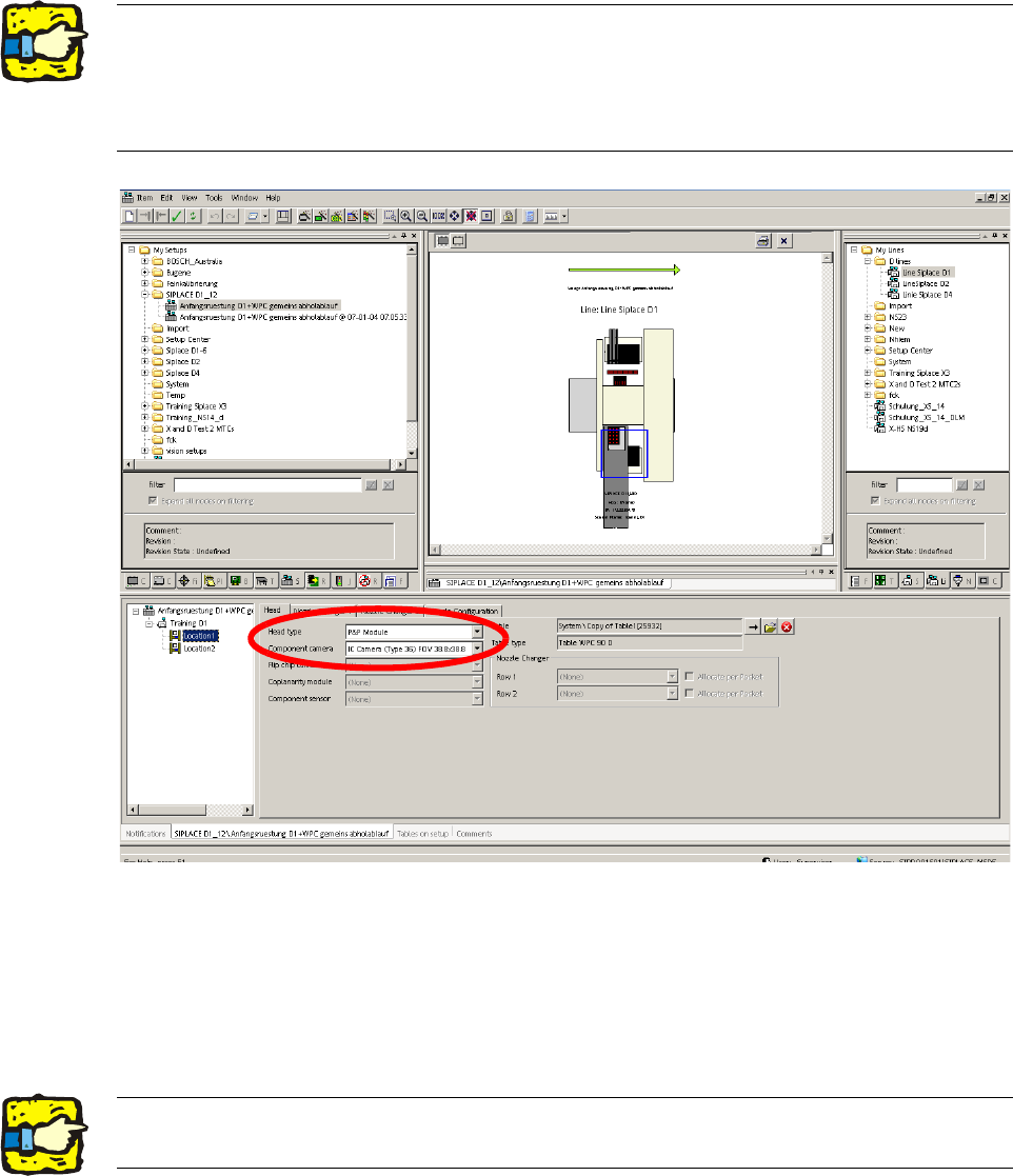 Montageanleitung Head Reconfiguration Kits SIPLACE D1 / D2 Ausgabe 02/2007 30 1.8.2 Konfiguration des C&P- Kop fes mit SIPLACE PRO : Gehen Sie in 'Rüstung'—'S tellpla tz'—'Registerkarte Kopf&…