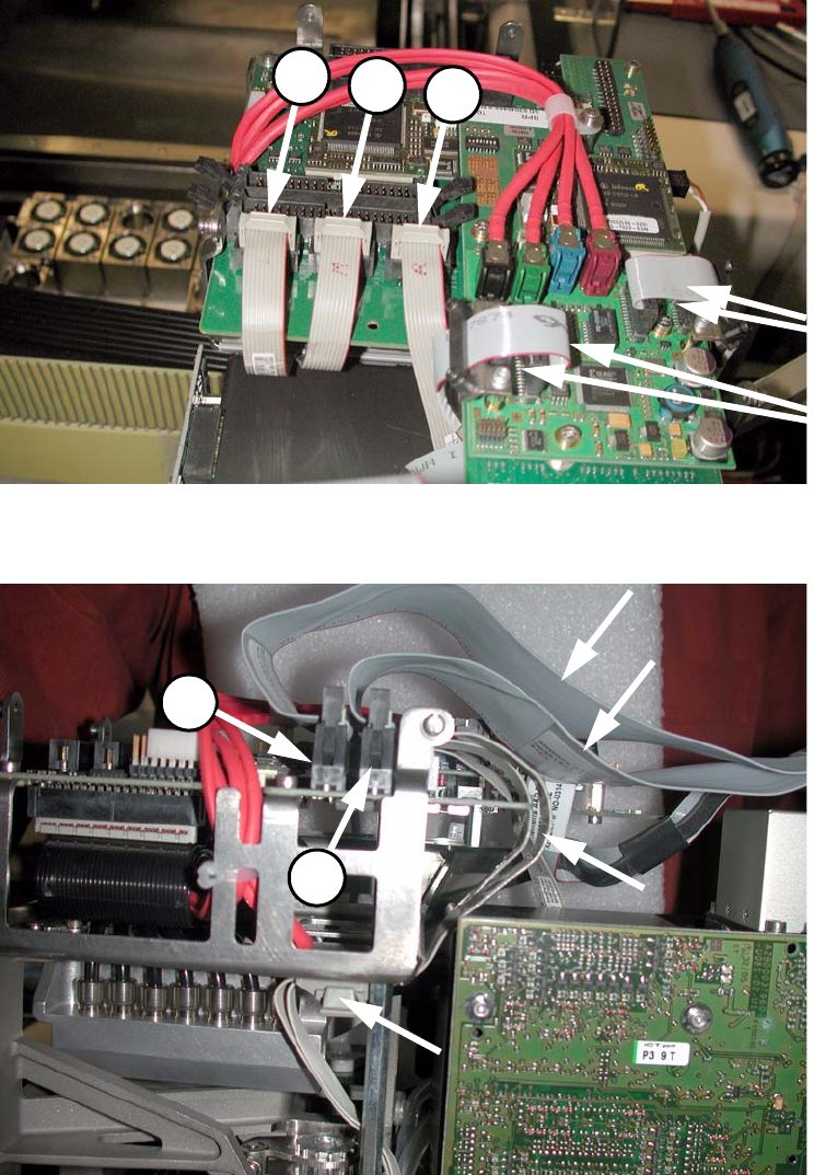 X22 X12 X10 X13 X14 Montageanleitung Head Reconfiguration Kits SIPLACE D1 / D2 Ausgabe 02/2007 38 1 Abb. 1.8.9 2 Kabel anstecken 1 : Fixieren Sie die 4 Kabel mit der Zugentlastung. 1 1.8.6 T ausch der Servokarten 1 T rag…