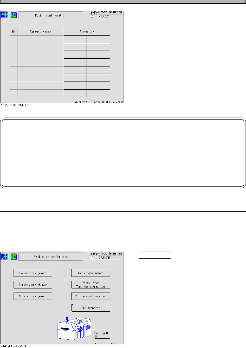 Page 3-13 FUNCTIONS 3 444C-E-OMA03-A01-03 3-3 Production Information The running states of production board, pick-up, chip feeding unit, etc. are displayed. 1. Press Performance info on the main menu. • The running infor…