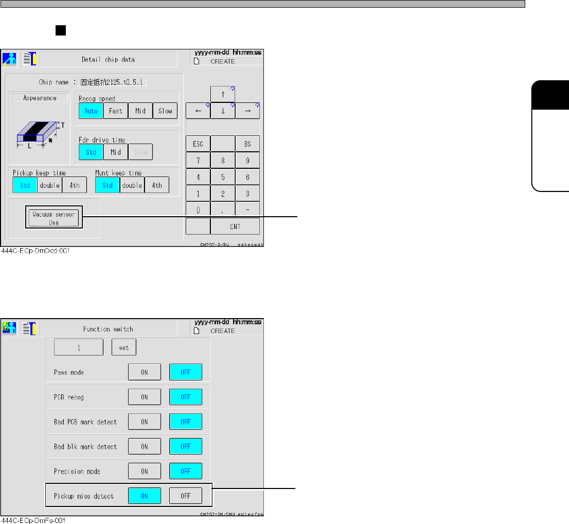 Page 3-32 444C-E-OMA03-A01-00 Others 3-6-3 V acuum Sensor Function Settings (on PT) Pick-up instability error detection is exclu- sively targeted for the chips that are pro- grammed to check in the chip data. • The check…