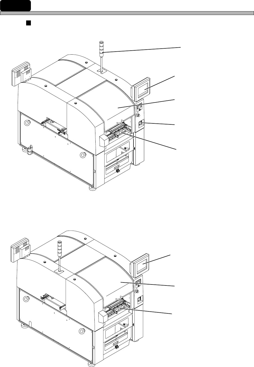 Page 1-2 444C-E-OMA01-A01-01 1-1 Names and Mechanism of Each Unit CM201 External view Front view Status indicator (3-color indicator light) Front panel Power supply switch Rear view Feeder table 1 Front cover Rear panel …