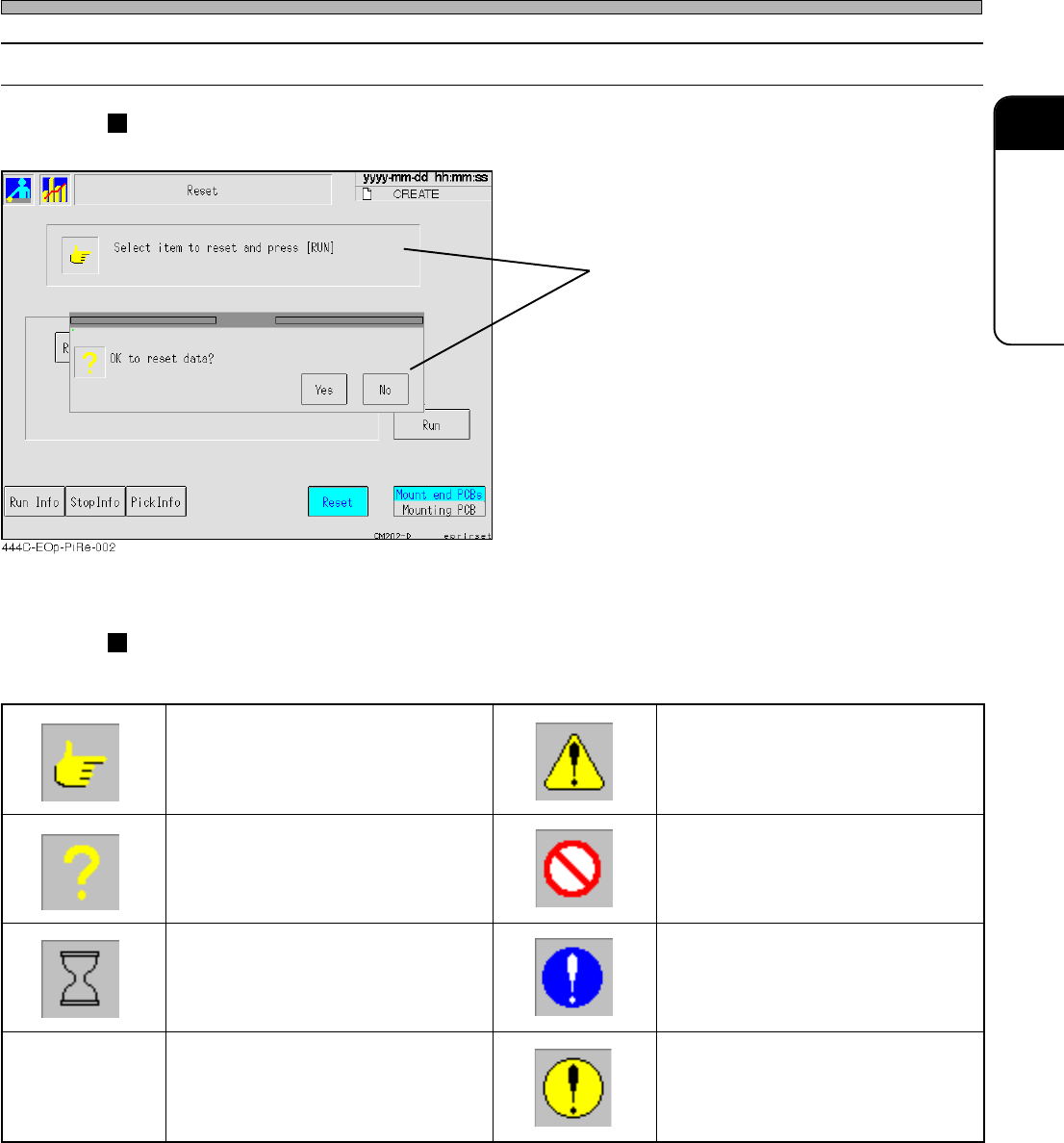 Messages to operators are displayed inside square frames.