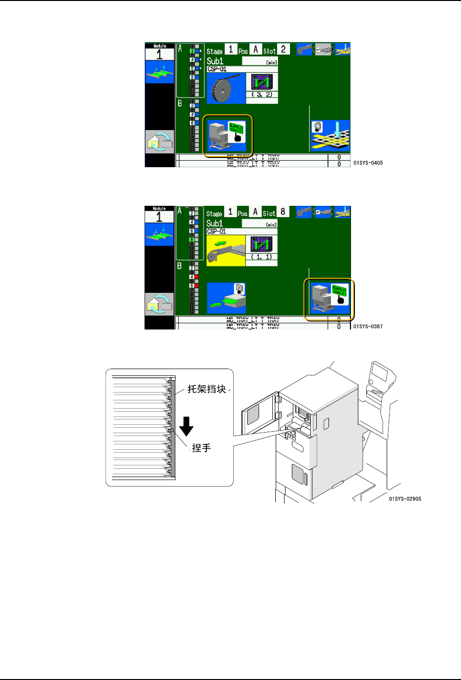 备注 )即使在托架档块处于下降状态时也可以半拉出料盘托架。此为便于操作员确认元件状