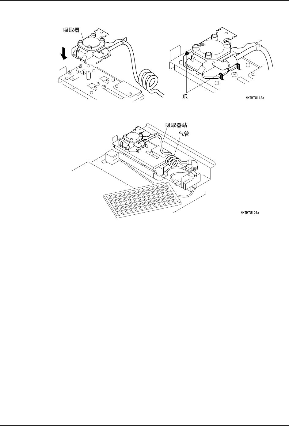 f. 为了运转时不妨碍吸取器的动作,请将气管配置在吸取器站的中央。