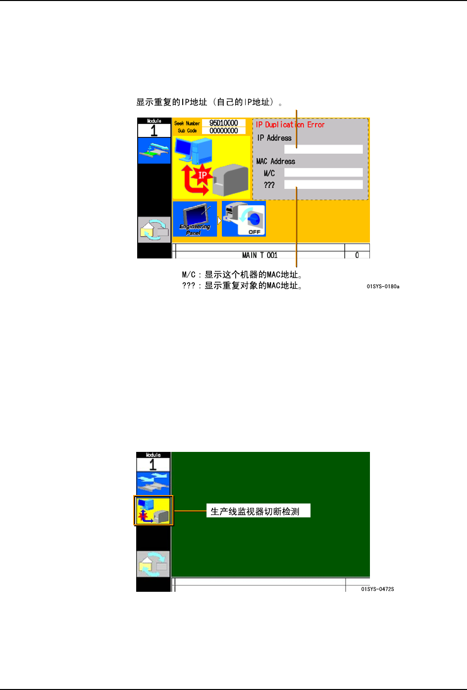 如果网络内的主机的连接和切断被反复时,显示错误画面进行警告。运转中,机器进行周期