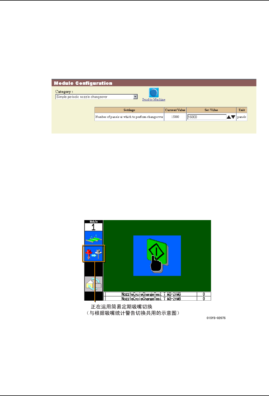 1. 请在辅助软件的 [Module Configuration] 画面上,进行简易定期吸嘴切换的设定。