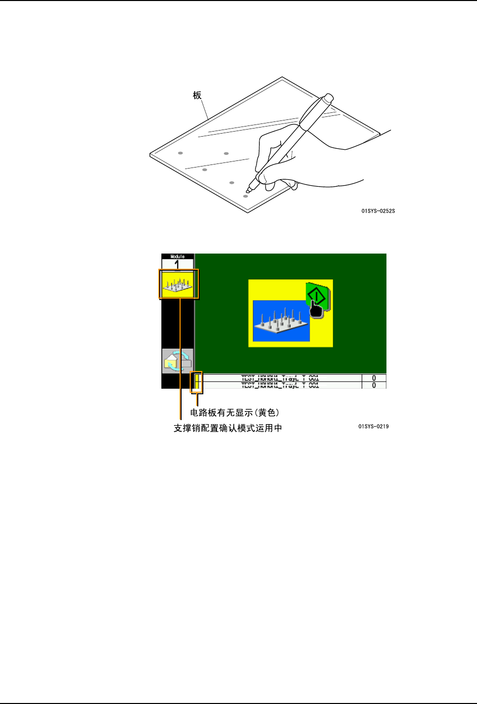 位置做标记。运用支撑销配置确认模式时,使该板夹紧在搬运轨道上。