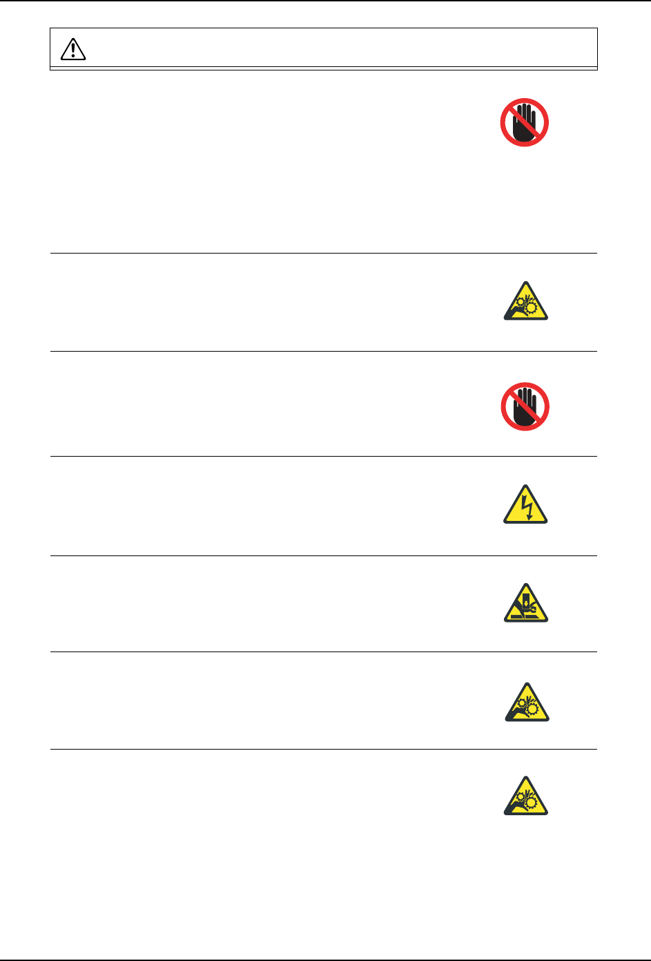 请不要将手放在主搬运轨道附近。