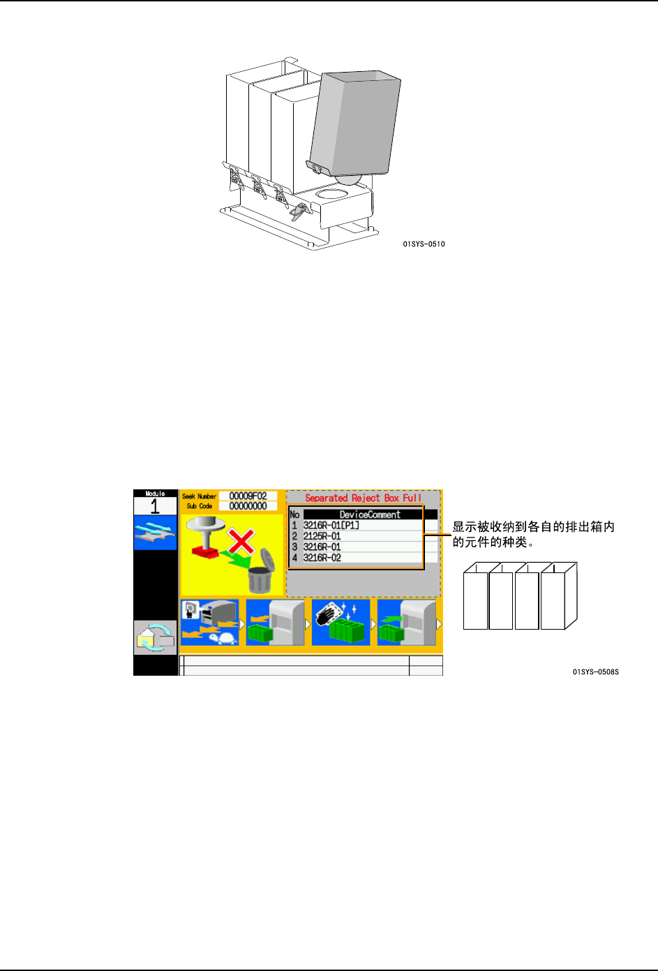 被收纳到分类元件排出箱内的元件种类是预先在 Job 中设定的元件种类。除此以外的元件