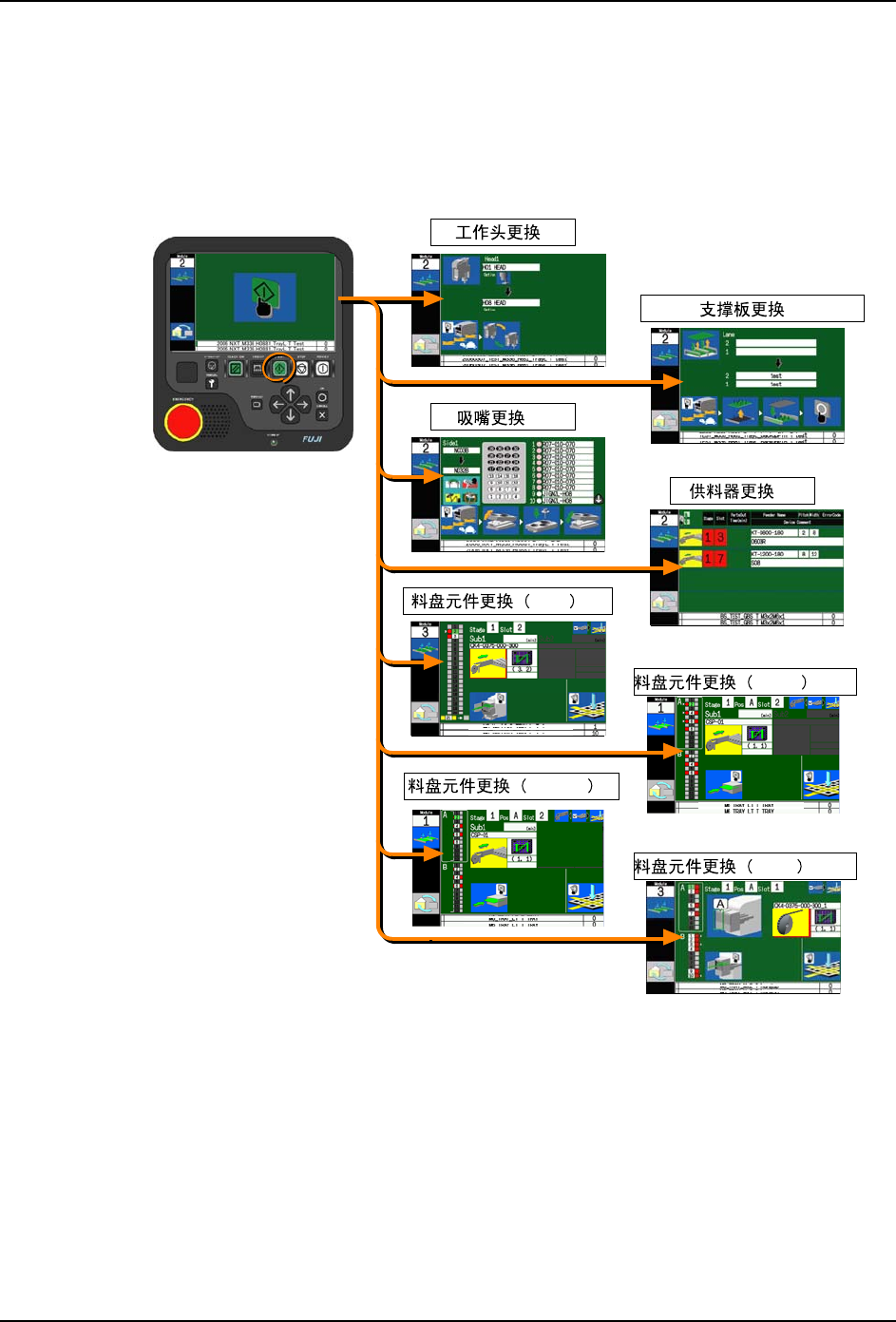 备注 )另外,也可能显示料站更换向导或元件相机更换向导。