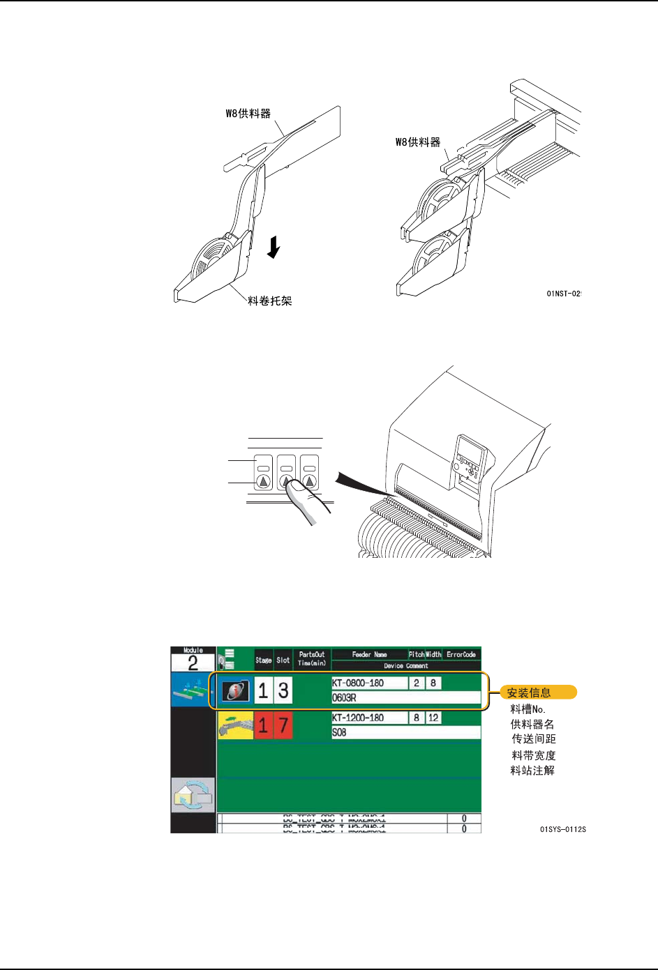 供料器安装后,当按下正面门上的安装按钮后,在向导画面上就会显示安装结束的料槽信