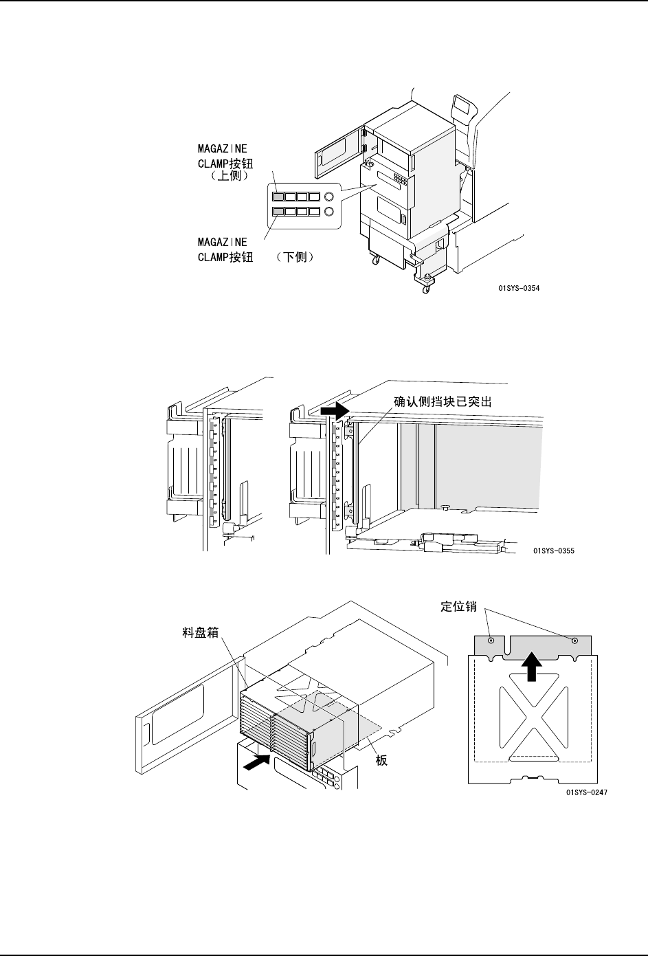 备注 )这里,如果 MAGAZINE CLAMP 按钮灯亮着,即使安装了料盘箱也不会正确地进行夹紧动