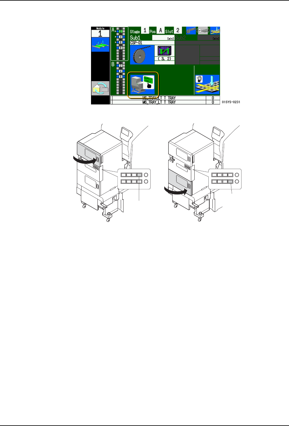 ·在开闭料盘单元 -LT 的上面门和下面门时,请不要有冲击。元件有可能移位或从