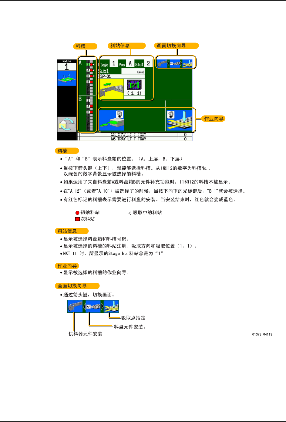 备注 )即使在托架档块处于下降状态时也可以半拉出料盘托架。此为便于操作员确认元件状