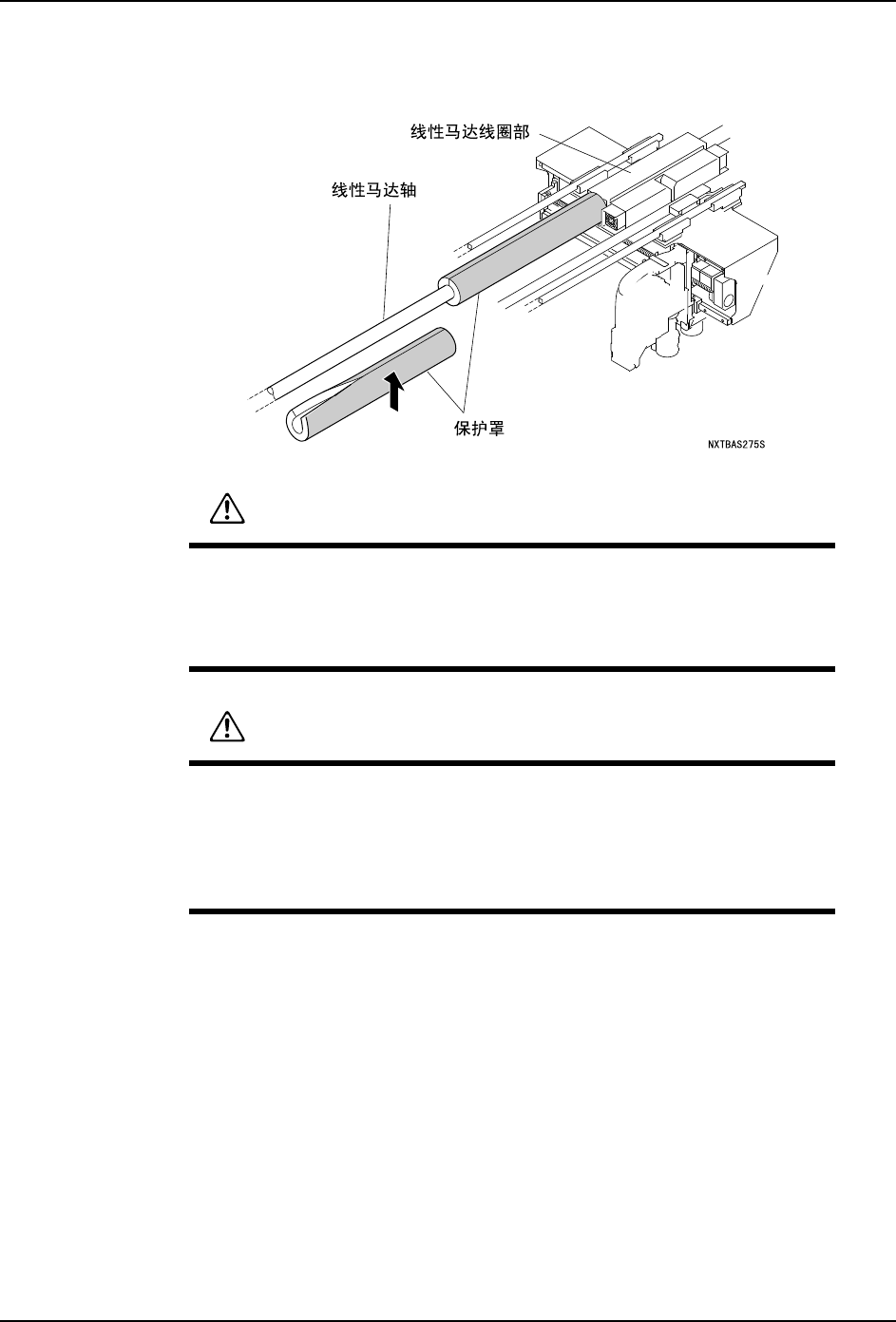 进行支撑板的更换时,请在 Y 轴线性马达的轴的温度降到常温后,安装保护罩。