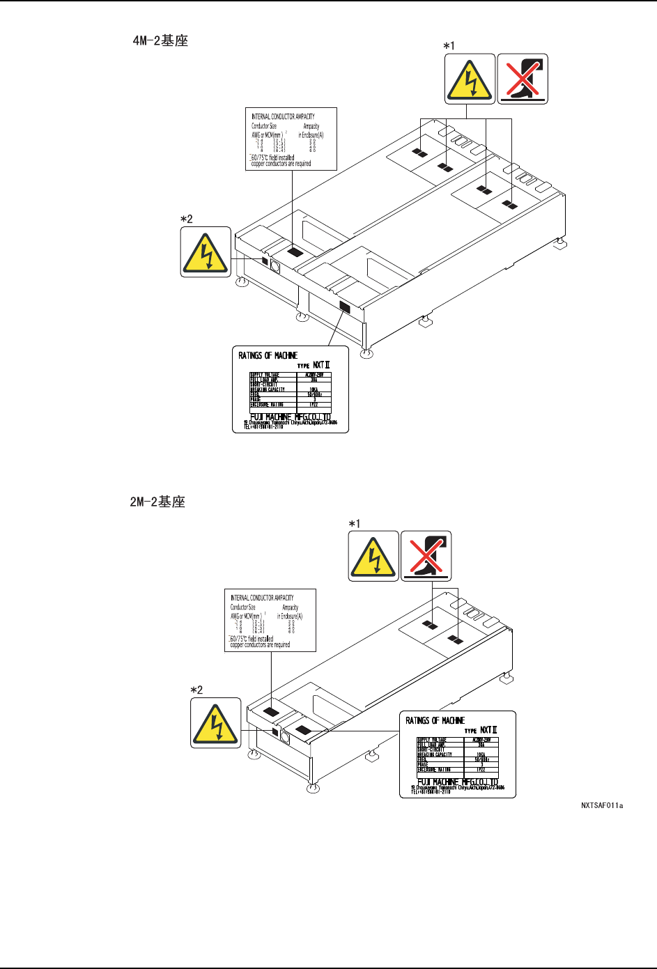 1. 安全指南 QD142-14 14 NXT II 系统手册 1.4 安全标识 表示使用机器时的注意事项的安 全标识贴在机器的下图所示位置。 请仔细阅读记载内容 , 安 全使用机器。 NXTSAF010f M3-2 㒘 *1 *1 M6-2SP 㒘 M6-2 㒘 *1 *1 请不要进行线性电动机的轴的分解。 存在磁石飞出,导致受伤的危险。 ᓮլၞ۩ᒵࢤሽ೯ᖲऱၗऱ։ᇞΖ ژڇفଆנΔᖄી࠹႞ऱٲᙠΖ 请不要进行线性电动机的轴…