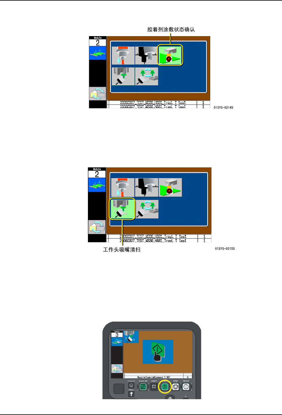 该指令使用在安装了 GL 工作头的模组上。执行该指令,测定涂敷在胶着剂检查单元上的胶