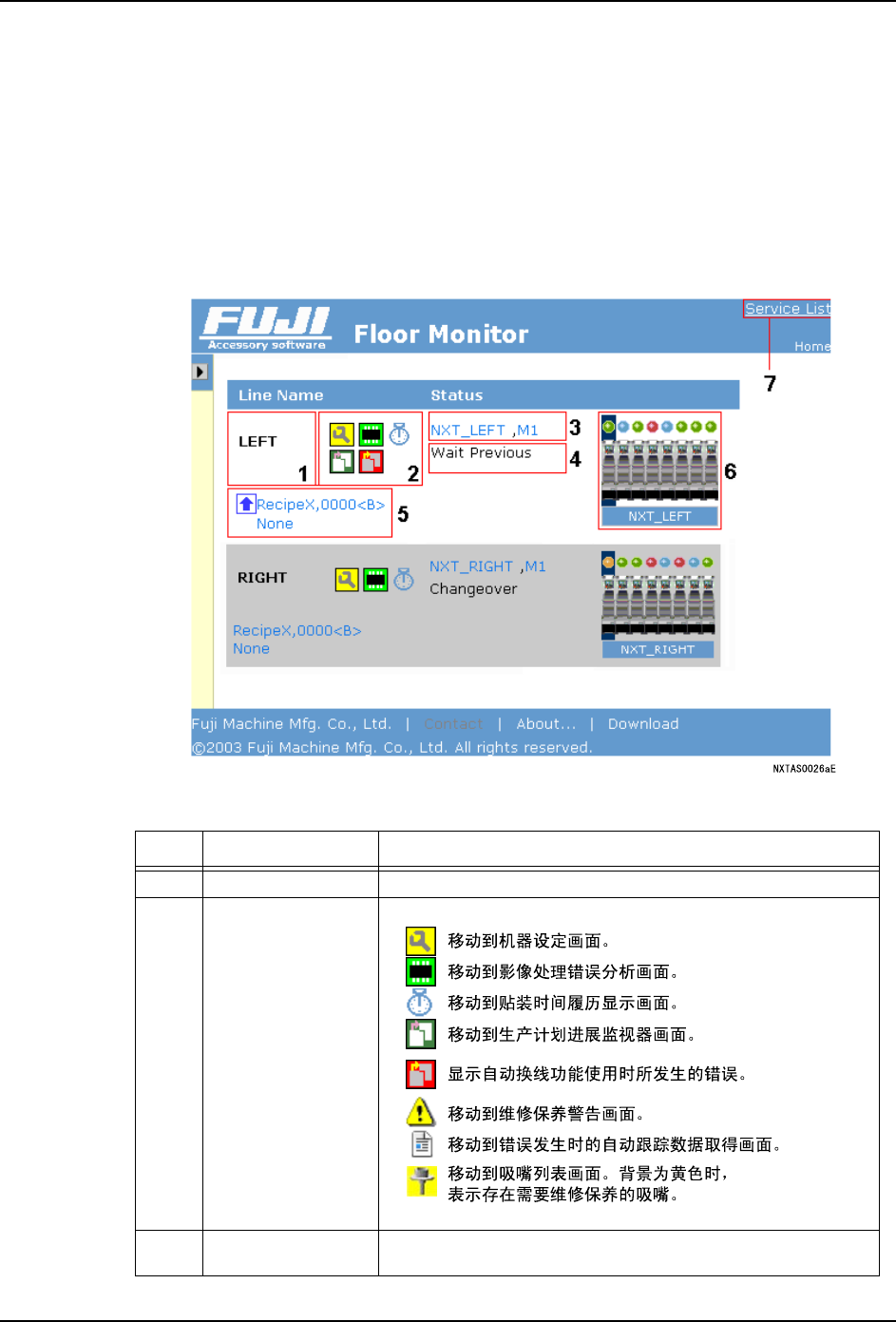 7 服务一览表 显示服务一览表。在线监视器中显示的生产线构成与实际的生