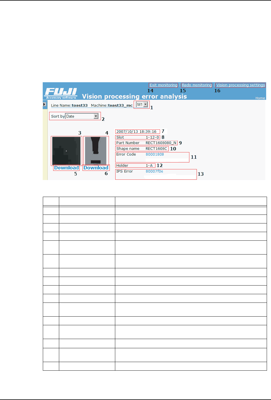 7.3.1 影像处理错误分析画面上显示的项目和含义